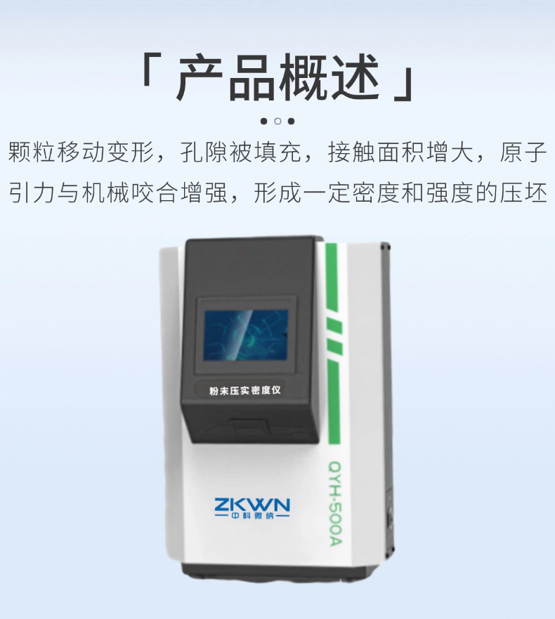 粉末自動壓實密度儀-在外力的壓縮過程中,隨著粉末的移動和變形,較大的孔隙被填充,顆粒間接觸面積增大,使原子間產生吸引力且顆粒間的機械契合作用增強,從而形成具有一定密度和強度的壓坯。